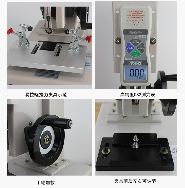 智取ZQ-21A-11易拉罐拉力試驗機該儀器機械部份采用全封閉結(jié)構(gòu)。機械傳動系統(tǒng)采用高精度滾珠絲桿與雙直線光桿,轉(zhuǎn)動間隙極小,大大提高測試的精密度。測試時轉(zhuǎn)動手輪使推拉力計上下運動,以實現(xiàn)對測試產(chǎn)品的拉伸或壓縮試驗。手輪部份采用杠桿原理設計,使用起來更輕便省力。力傳感器部份采用智取品牌一代DS2系列推拉力計。誤差可控制在0.5%左右,采樣速率可達1000次/秒,同時配送軟件和USB數(shù)據(jù)線,可同步把數(shù)據(jù)傳送到電腦,進行數(shù)據(jù)保存。 通過轉(zhuǎn)換不同夾具可進行,拉伸、壓縮、彎曲、剝離、剪切、撕裂、刺破、等試驗。儀器具有體積小、結(jié)構(gòu)緊湊、穩(wěn)定性高、使用方便等優(yōu)點長期受到廣大用戶的喜愛。(可選配精度0.01MM的位移標尺,可以實現(xiàn)力和位移的同步變化,實時顯示拉力或壓力同位移的變化)